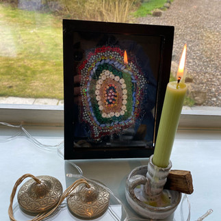 While I was doing that share I was holding up this pic which I was inspired to make after a workshop I ran on October 1st 2023 which helped me to make sense of some challenging times I was experiencing. It was in large part inspired through a Mooji Satsang (a spiritual discourse or sacred gathering) which had found its way into my life around that time. Mooji referred to this space of 'centre' which is unchangeable and timeless. This picture here shows loads of beads of different textures, shapes and colours. And in the centre are some pink ones which are that space 'the centre'. That everything around it represents life, responsibilities, past, future, memories, ideas, thoughts, things we identify with, things to do, things that happened and need to happen, the bright red outer represents the 'ring of fire', that feeling when you're completely LOST in the bollocks of a situation and are totally consumed by the mind. Those outers represent all the things that come with having a human existence. In there centre, its not about being human, its about 'being'.